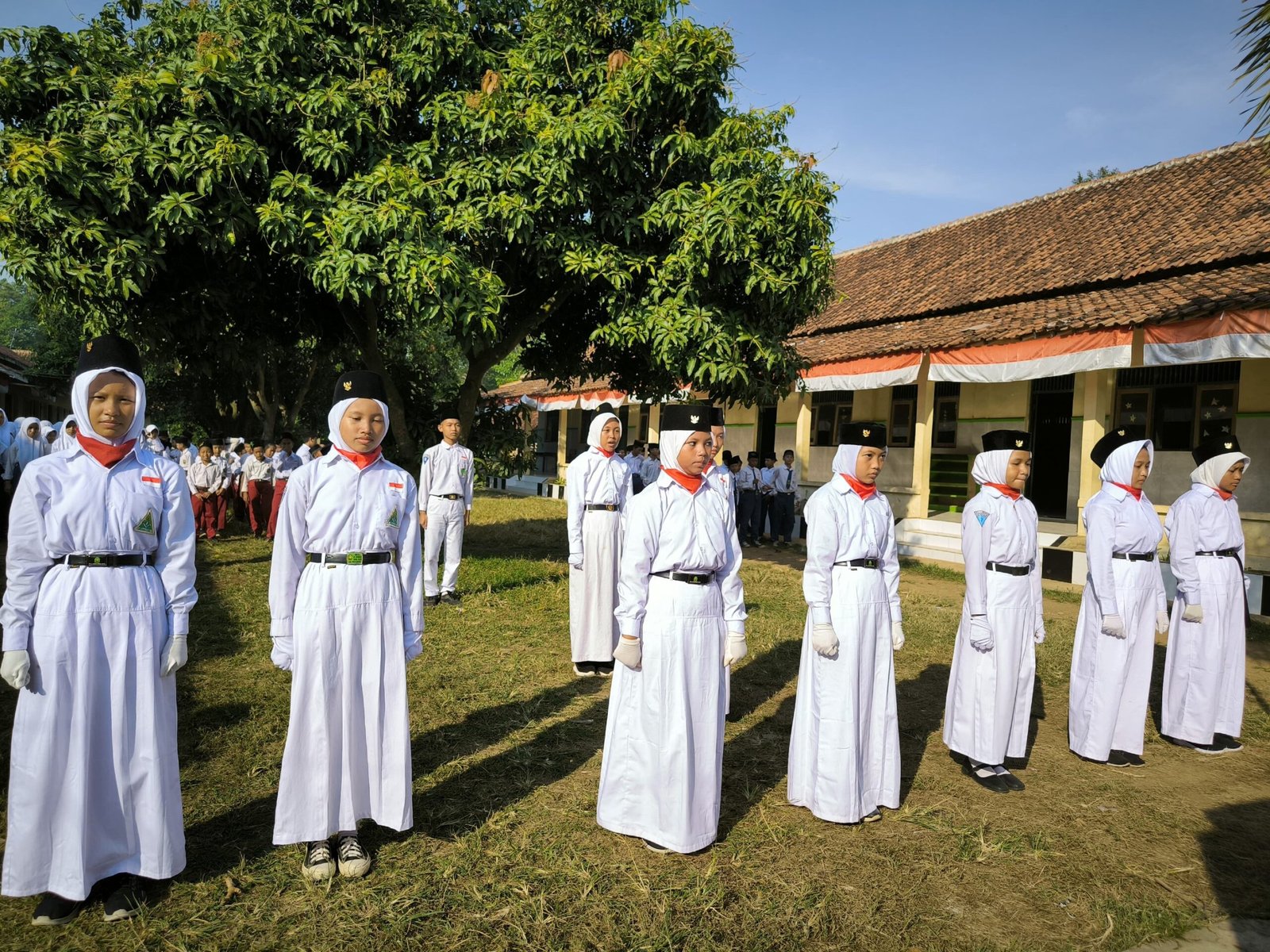 Tangkil Kulon, 17/08/2024— Upacara dalam rangka memperingati Hari Ulang Tahun Republik Indonesia yang ke-79 pada tahun 2024 diselenggarakan dengan penuh khidmat di lapangan upacara MTs Al-Hikmah Tangkil Kulon. Kegiatan ini diadakan bersama dengan lembaga-lembaga lain yang berada di bawah naungan Yayasan Baitul Hikmah Kabupaten Pekalongan. Upacara ini diikuti oleh seluruh siswa, guru, dan staf sekolah yang mengenakan pakaian adat sebagai bentuk penghormatan terhadap kekayaan budaya Nusantara.